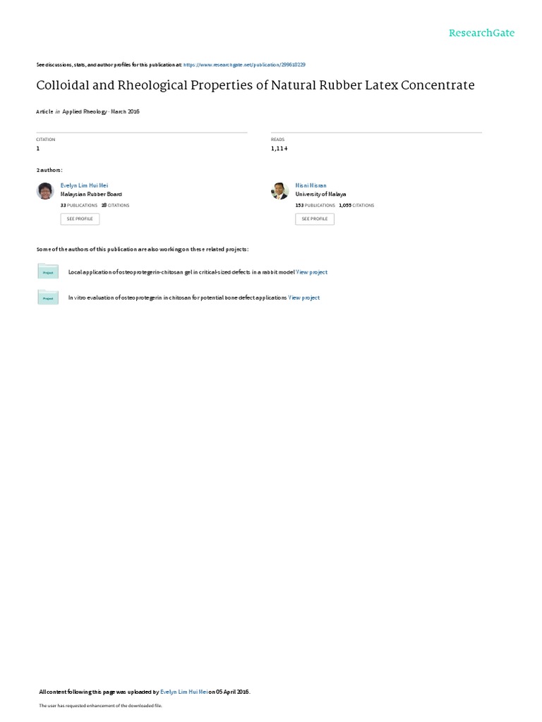 (PDF) Colloidal and Rheological Properties of Natural Rubber Latex Is Rubber Latex A Macromolecular Colloid Web natural rubber latex (nrl) is a complex colloidal system composed of rubber particles surrounded by a layer of phospholipids and. Web natural rubber obtained from a milky colloid (latex) extras mainly from the tree hevea brasiliensis is approximately 95% cis. In this article, we review the modification of natural rubber (nr) latex into the engineered particles for make use. Is Rubber Latex A Macromolecular Colloid.